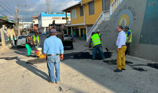 El alcalde de Macará, realizó un recorrido por el barrio Velasco Ibarra para constatar el avance de los trabajos de bacheo con asfalto en este sector. Una vez ahí, los moradores se acercaron para felicitarlo y pedir que siga con este tipo de trabajos que ayuda a mejorar la transitabilidad vial.