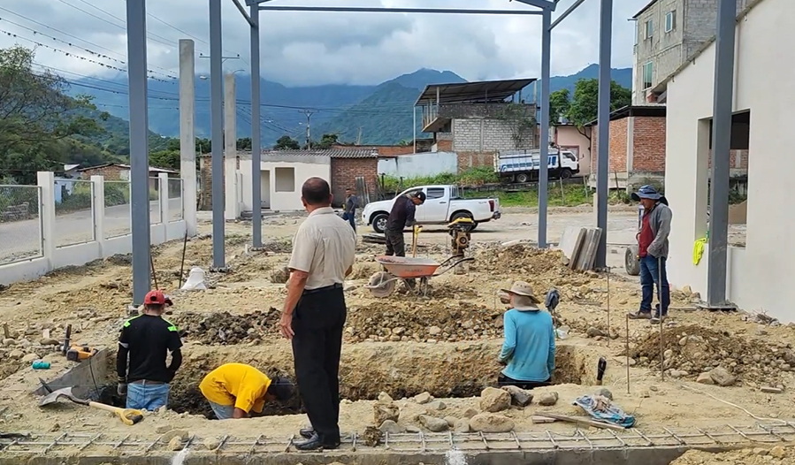 Esta obra, ejecutada bajo la modalidad de contrato con el consorcio “Valiente Macará”, registra avances significativos.